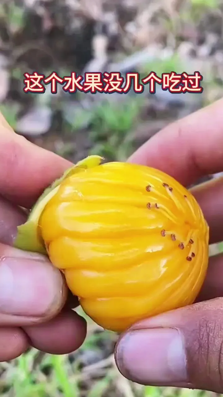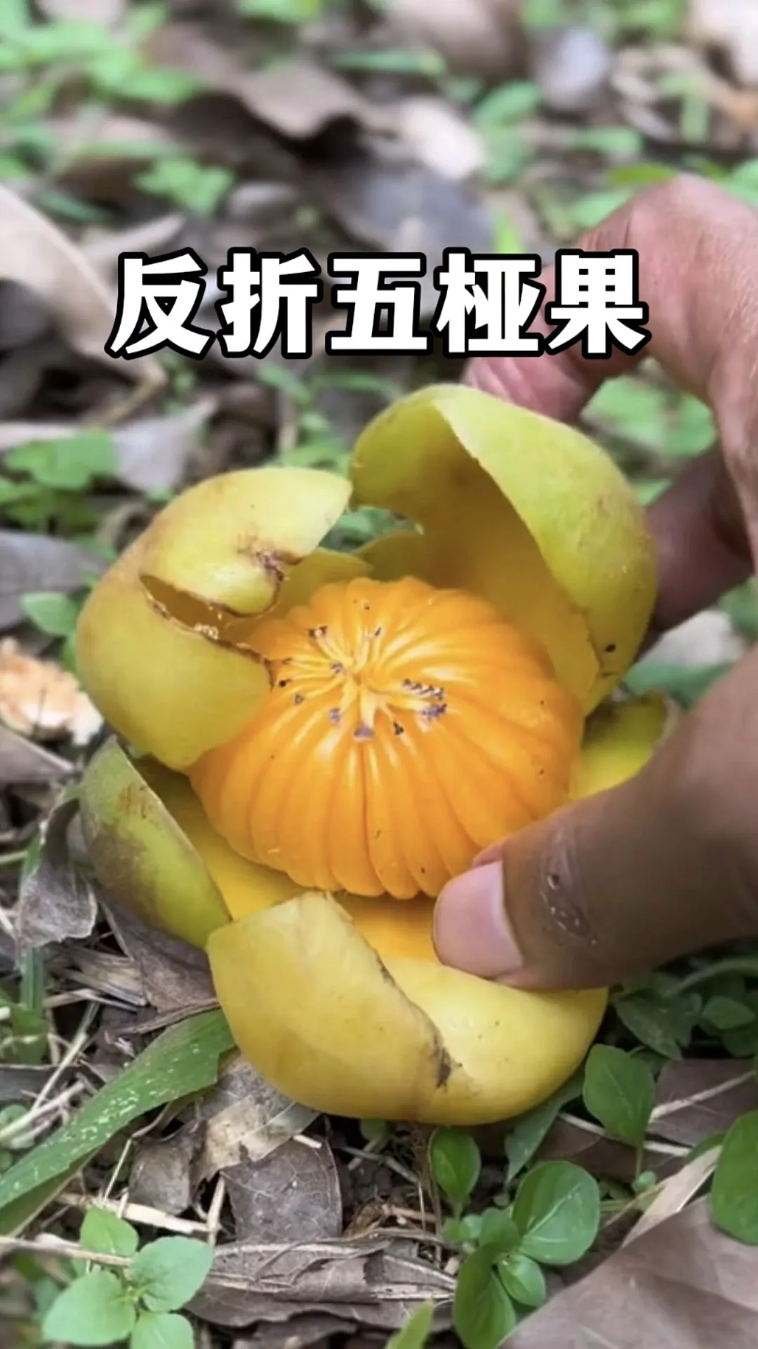 作为五桠果科的一员,这果子的外形自带热带植物的精巧劲儿,和咱们平时见的水果差别不小。没成熟的时候,它被五片整齐的萼片紧紧裹着,像穿了件绿色小外套,剥开外套能看到棕色、像流苏似的雄蕊,还有顶端的雌蕊,就跟藏了小秘密似的。等完全熟透,萼片会自己裂开、舒展开来,露出金灿灿的果肉,远远看去像一朵开着的小花。最奇妙的就是它落地的瞬间,会优雅地翻个身,把原本朝下的一面翻上来,比猕猴桃、杨桃成熟后只变色、不掉落或不翻转的样子,可有趣多了。