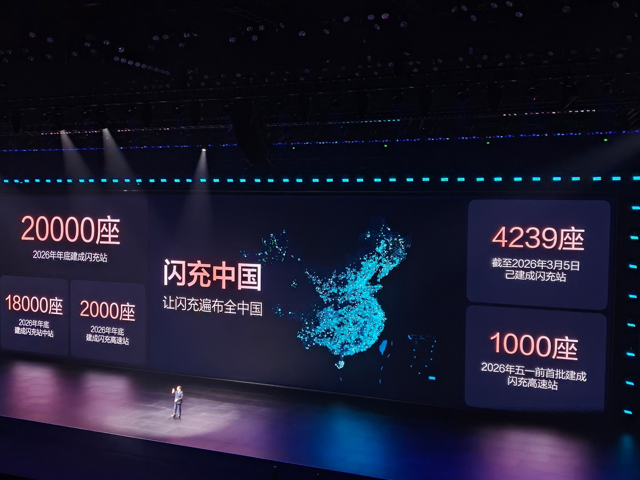 战略层面上,比亚迪计划在2026年底前,在全国建成落成20000座闪充站。其中包括覆盖城区核心区域的18000座“闪充站中站”,以及覆盖高速路网的2000座“闪充高速站”。