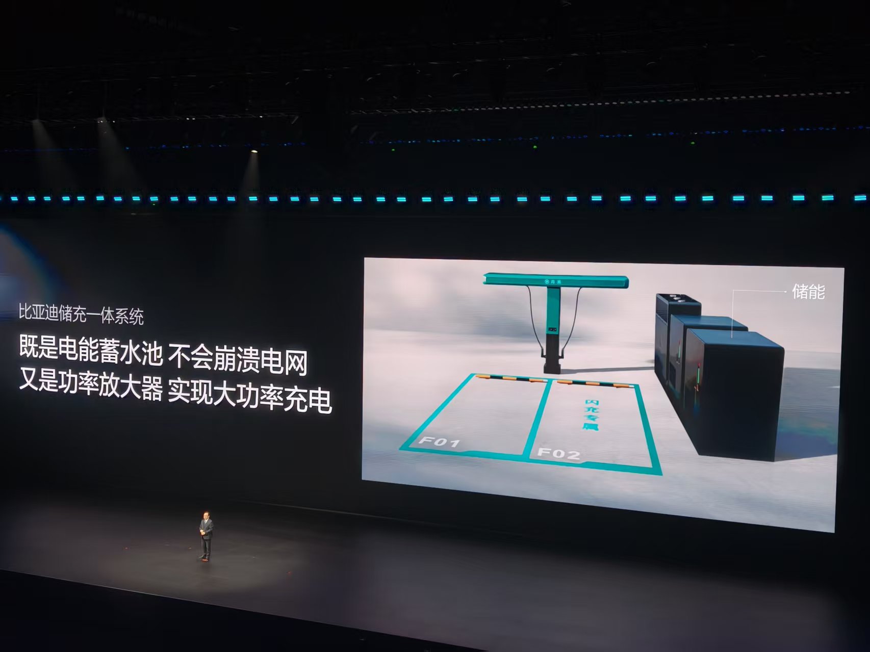 由于比亚迪全新开发的闪充桩单枪充电功率最高可达1500kW,所以在硬件设施上必须升级。比亚迪提供了储充一体系统,这套方案既是电能“蓄水池”也是功率“放大器”,能在不伤害现有电网的前提下突破容量限制。