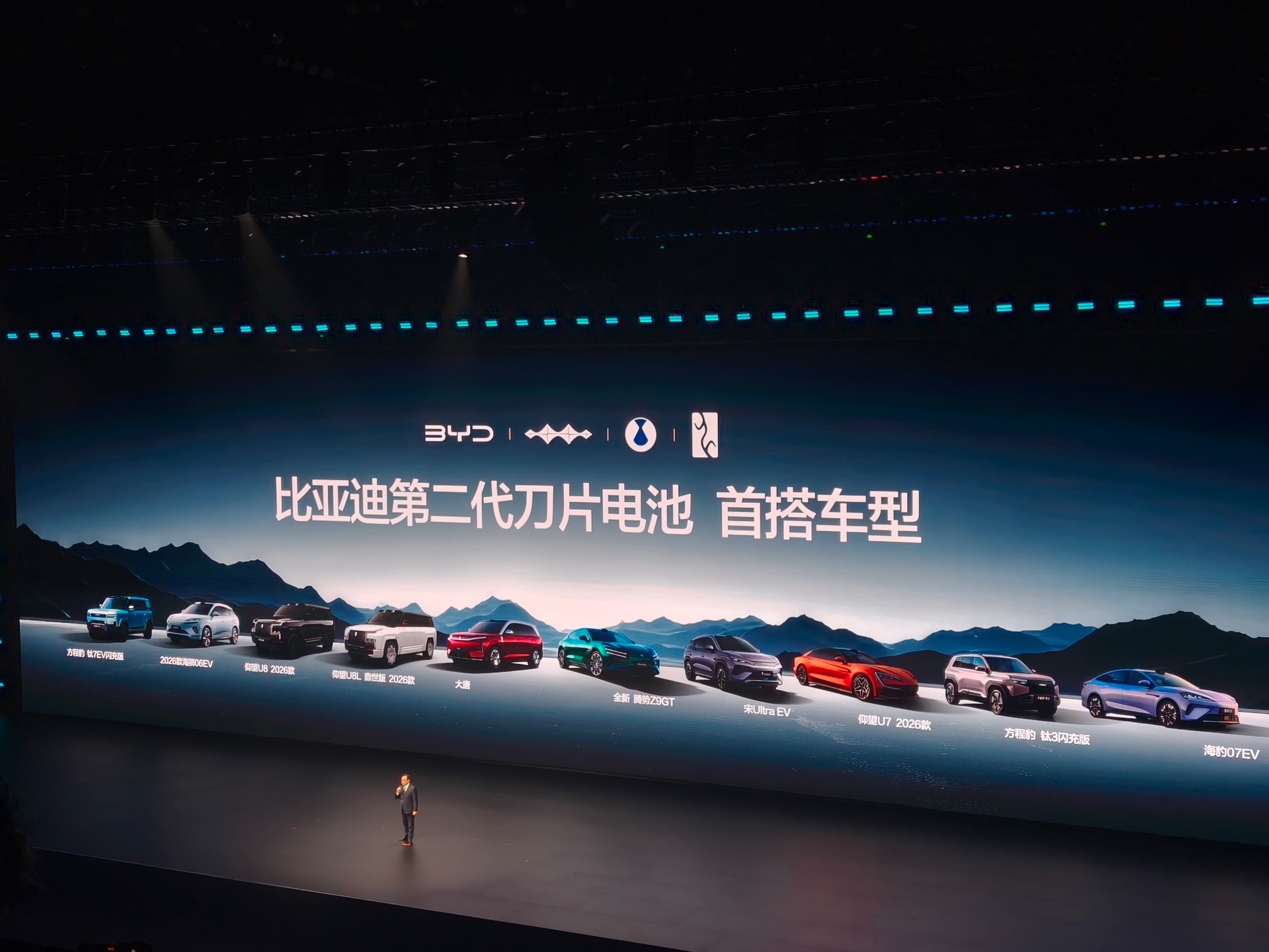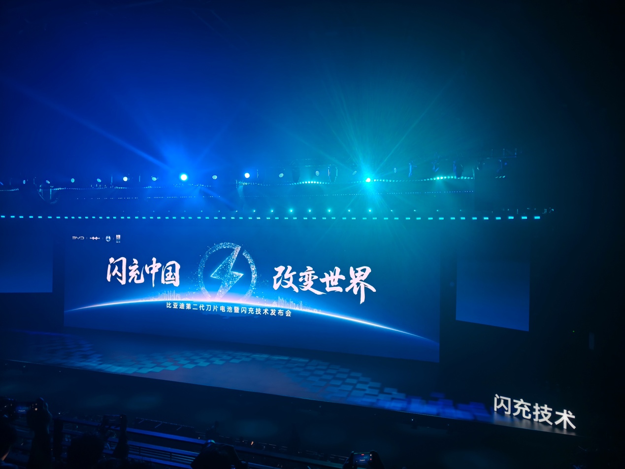 2026年3月5日,比亚迪在深圳正式发布第二代刀片电池及闪充技术,5 分钟充好,9 分钟充饱贯穿发布会始终。