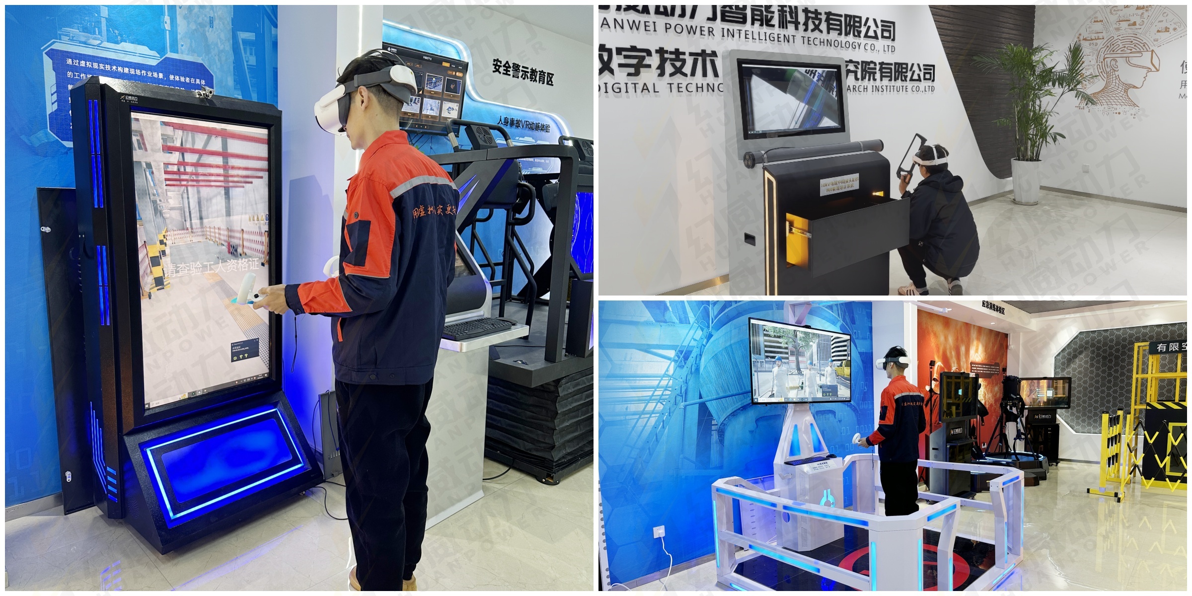 适配于电力行业的有VR人身事故体验、机械伤害互动体验、跨步电压触电体感体验、智能触电体验、开关柜检修体感体验、VR应急演练培训、高风险作业风险辨识与隐患排查VR体验、火电巡检风险辨识与隐患排查VR体验、VR电网反违章作业培训、XR600MW火电检修培训、VR电网作业技能培训、MR10kV电缆中间接头制作智能培训,配网10kV不停电作业VR模拟实训、带电作业“跨二短三法”进入等电位VR实训等数十种安全体验设施。