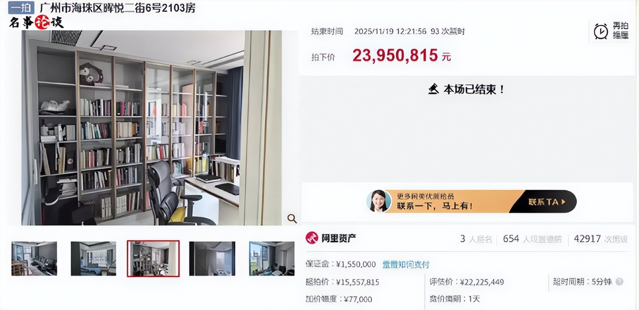 事情发生在广东珠海,一套199平的房子被法拍,最后竞拍出了2395万的高价,算下来1平12万左右的单价。万万没想到,拍到的买家后悔了,不想交余款。对于这件事,法拍平台强硬回应:“可以反悔,但是155万的保证金不退。”
