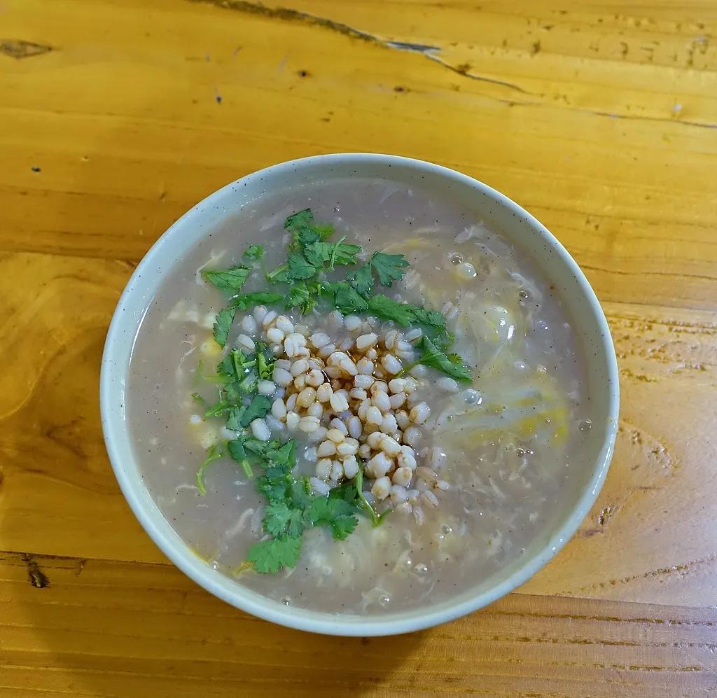 在商丘,清晨是从一碗“饣它汤”开始的。鸡肉与麦仁同煮,打入蛋花,撒上香菜、香油。据说这汤已有数百年历史,曾是进贡朝廷的珍品。