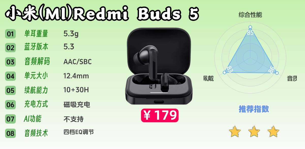 推荐七、小米(Ml)Redmi Buds 5