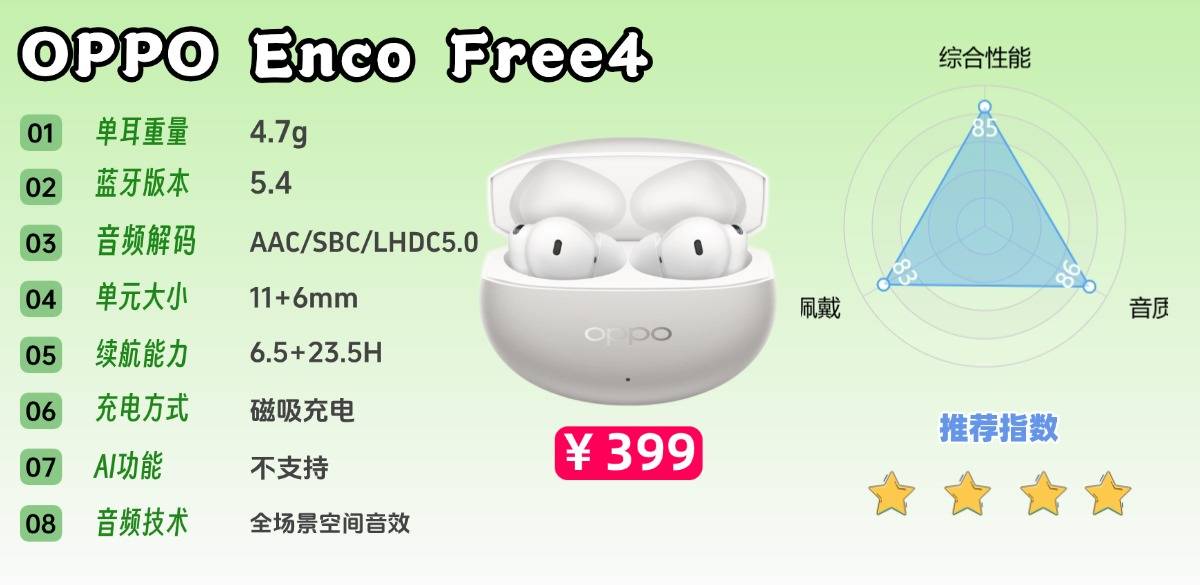 推荐九、OPPO Enco Free4