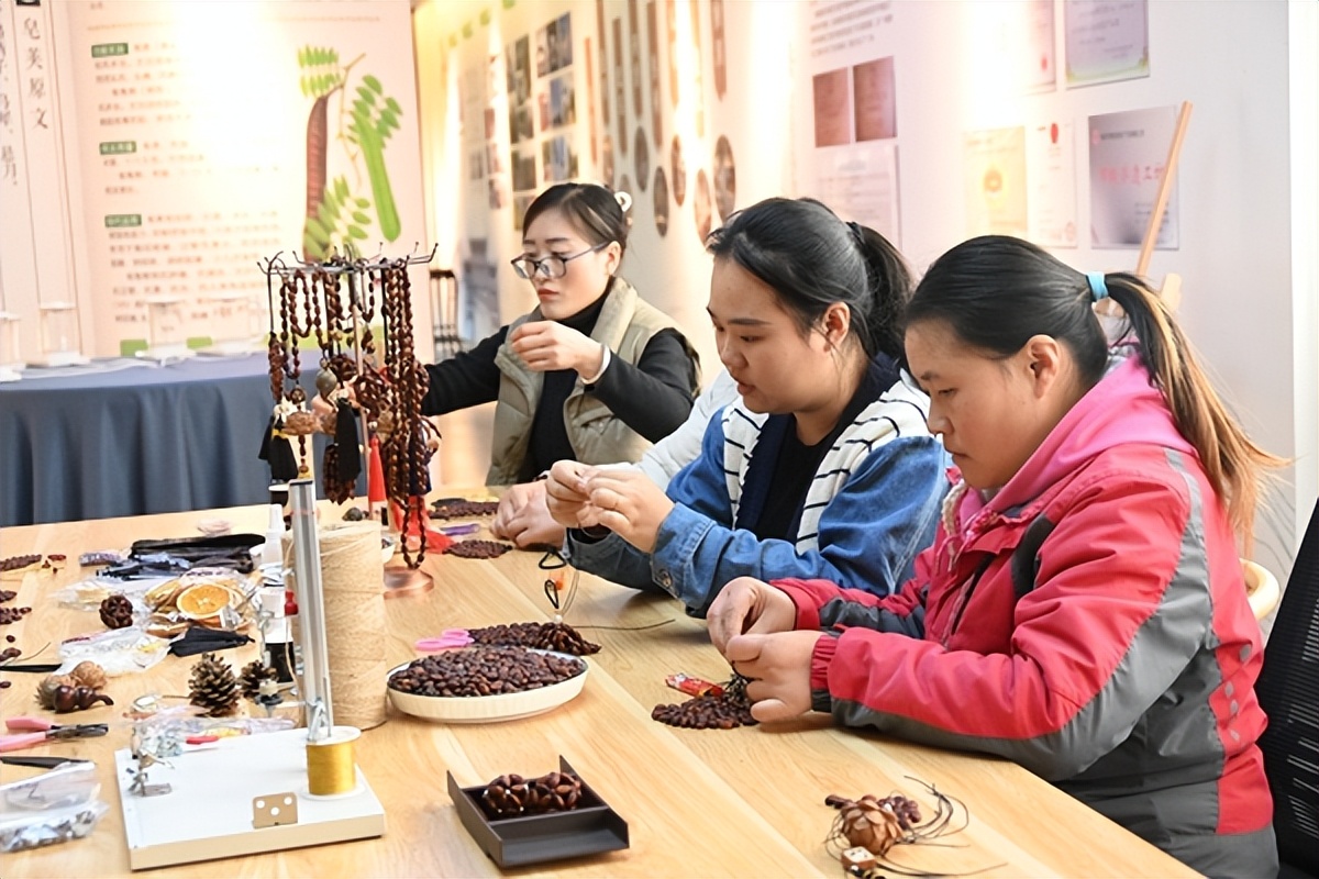 皂角文创更显巧思。非遗绳结传承人将皂角籽天然纹理与绳结技艺融合,开发出“平安结”“富贵结”等手串、车挂、包挂,融入“和圣”典故的礼盒备受青睐。“每一件产品都有故事,皂角籽寓意‘招贵’,绳结寄托平安,送礼很有心意。”正在选购的游客李女士说。2025年11月,“柳下皂”短视频在中央农业广播电视学校官方抖音号“村艺工坊”上线,点赞量迅速破万,让这一非遗品牌火出了圈。