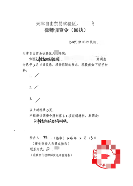 律师调查令、复函,(知情者提供)