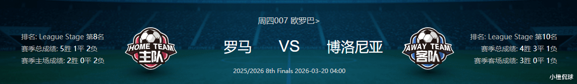 看法:罗马距意甲前四仅差2-3分,双线作战压力较大,主场必须争胜才能避免翻盘风险,而博洛尼亚联赛冲欧希望渺茫,欧罗巴成为本赛季核心战场,客场只需逼平即可占据晋级主动,此外两队赛程均十分紧凑,罗马赛后3天需对阵切沃,博洛尼亚赛前3天刚战拉齐奥,体能考验成为双方的共同难题。综合来看,罗马虽有主场优势和欧战经验,但伤病潮严重状态低迷,博洛尼亚状态火热阵容齐整,客场韧性十足,本场比赛大概率延续交锋的谨慎态势,不过个人更倾向于罗马小胜。