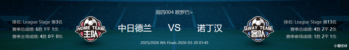 中日德兰从欧联杯的战绩来看,近10场比赛取得了8胜1平1负的佳绩,胜率高达八成,整体表现十分抢眼,球队的稳定性尤为值得称赞,目前已连续4场欧联比赛保持不败,展现出稳健的竞技状态。在进攻端近6场欧联比赛火力全开,共打入11球,场均进球数达到1.83个,且6场比赛均有进球入账,进攻稳定性堪称出色,在对阵布兰时单场攻入3球,更是彰显了球队强大的进攻实力,而在首回合客场以1-0战胜诺丁汉森林,为次回合的较量赢得了宝贵先机,回到主场手握一球优势,战术部署上既可以选择稳守反击,也能伺机主动出击扩大战果。