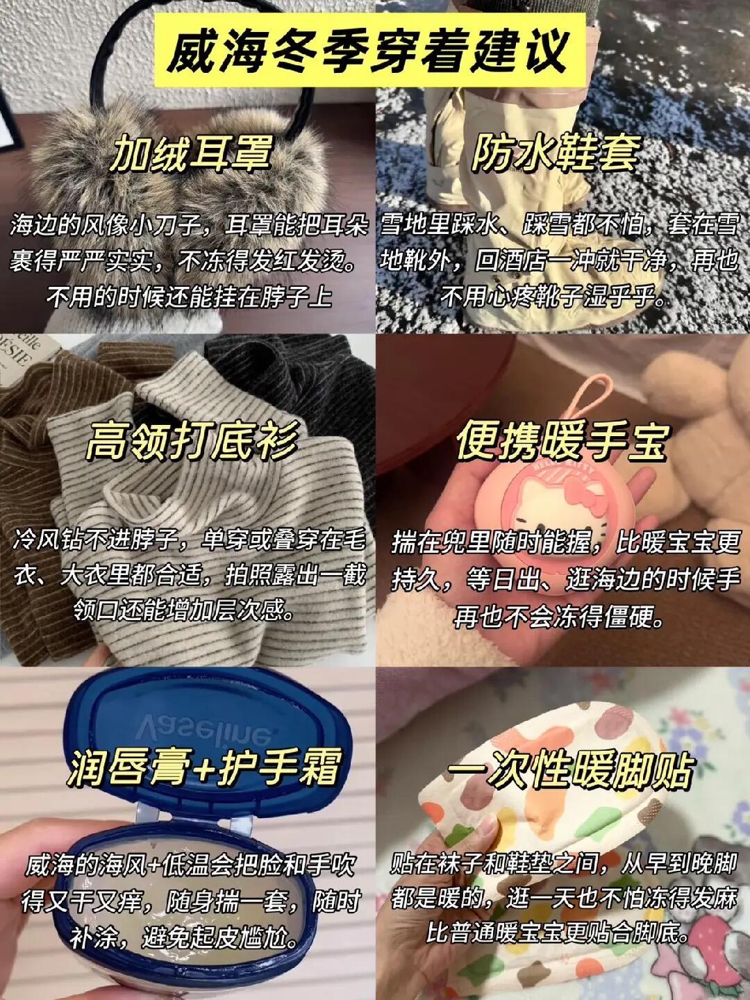 去威海玩暖宝宝要多带,贴身上和手机背面,不然低温下手机容易冻关机,影响拍照。环海路雪后容易结冰,自驾的话一定要低速慢行,新手建议直接打车或包车,省心又安全