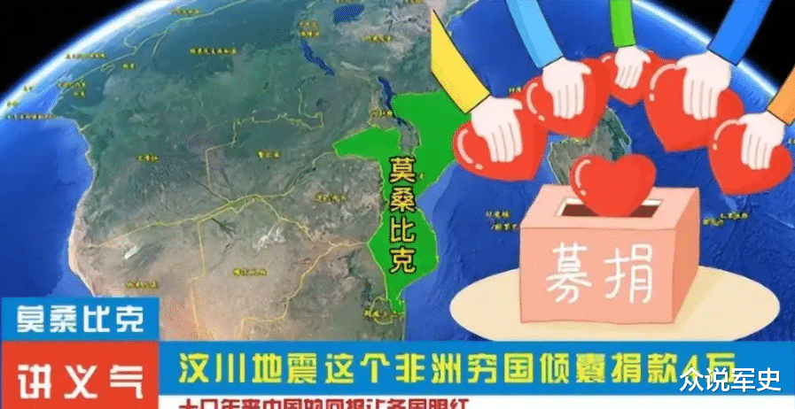 国际社会纷纷伸出援手,沙特捐了5000万美元,美国给了50万美元,缅甸捐了100万美元。各国按照自己的财力表达着心意。就在这时候,一个非洲小国的名字出现在了捐款名单上——莫桑比克,捐款数额:4万人民币。