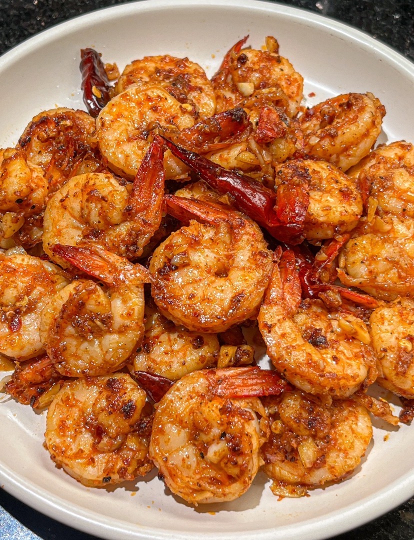 当蒜香弥漫整个厨房,将刚才煎好的虾仁重新倒回锅中,快速翻炒,让每一只虾仁都均匀地裹上这浓郁的蒜香黄油汁。此时,沿着锅边淋入少许料酒,高温激发出酒香,能进一步带走最后一点腥气,只留下纯粹的鲜香。加入少许白糖提鲜,中和辣椒的烈度和黄油的浓郁,让味道更有层次。尝一下味道,如果觉得淡,再视情况补充一点点盐,但要格外小心,因为腌制时已有底味,后续调味需谨慎,避免过咸。