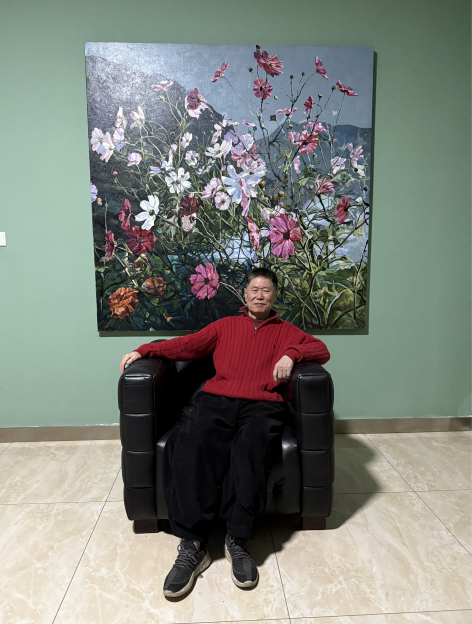 从东北乡村走出的他,一生都带着土地赋予的质朴与温暖。童年院落里的阳光、花开、老屋,成为他艺术最初的灵感,也成为他一生不变的精神原乡。他始终坚信:艺术从自然中来,到自然中去。无论走得多远、成就多高,他的笔墨始终贴着大地、连着生活、系着人民。这种不忘来路、不忘故土的赤子情怀,让他的画有根、有魂、有温度,也让他的精神世界始终清澈而坚定。