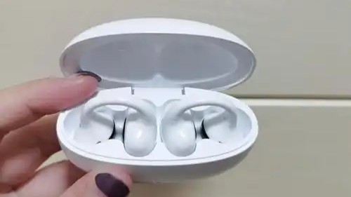 漫步者LolliClip主打简约耐看的设计风格,拥有冰川白、暖沙金两款清爽配色,亮面充电仓提升整体质感,日常出街、职场通勤等场景都能轻松搭配。机身采用高韧性镍钛合金丝搭配空气弧软梁,单耳约6.5g,支持左右通用且能自动校准声场,通勤和轻度运动时佩戴稳固,长时间佩戴耳廓会有轻微压迫感,整体尚可接受。