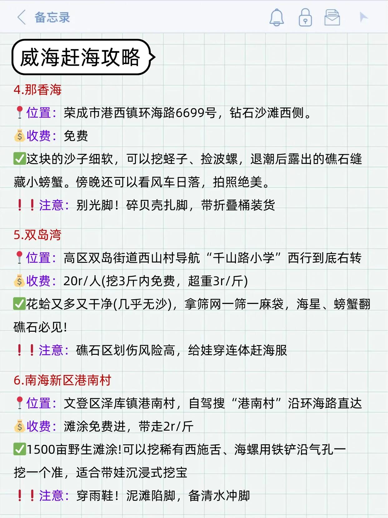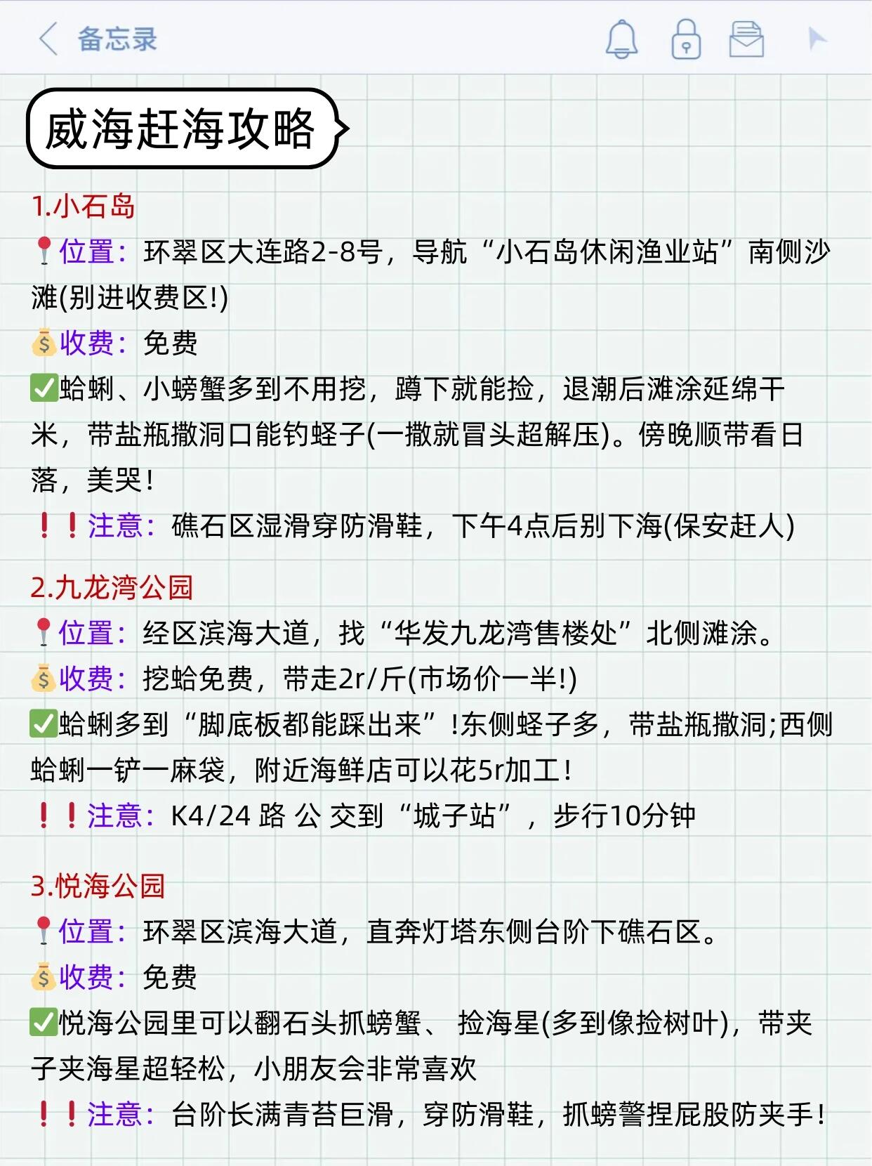 ⚠️黄金时间:大潮后2小时!涨潮前3小时撤(可以搜“威海本地宝”回“潮汐”查实时退潮时间)。