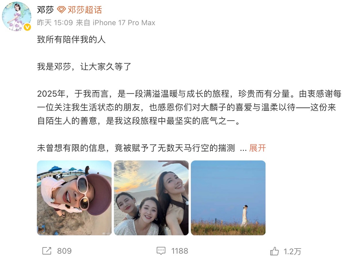 邓莎在文中坦言,节目播出后的一个月,她几乎不敢打开社交平台,“那些揣测和谩骂像潮水一样涌来,我才发现自己高估了心理承受能力”。