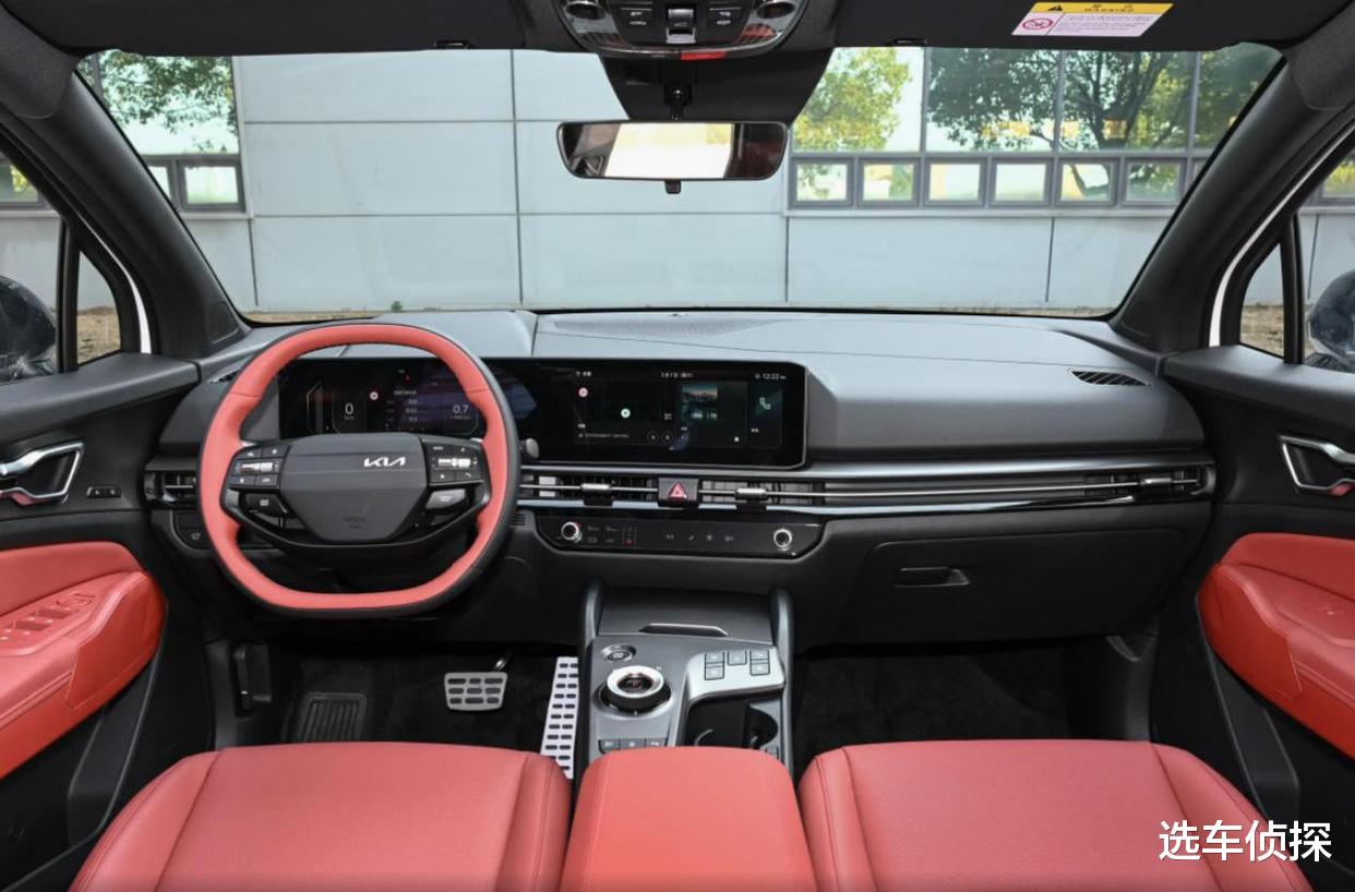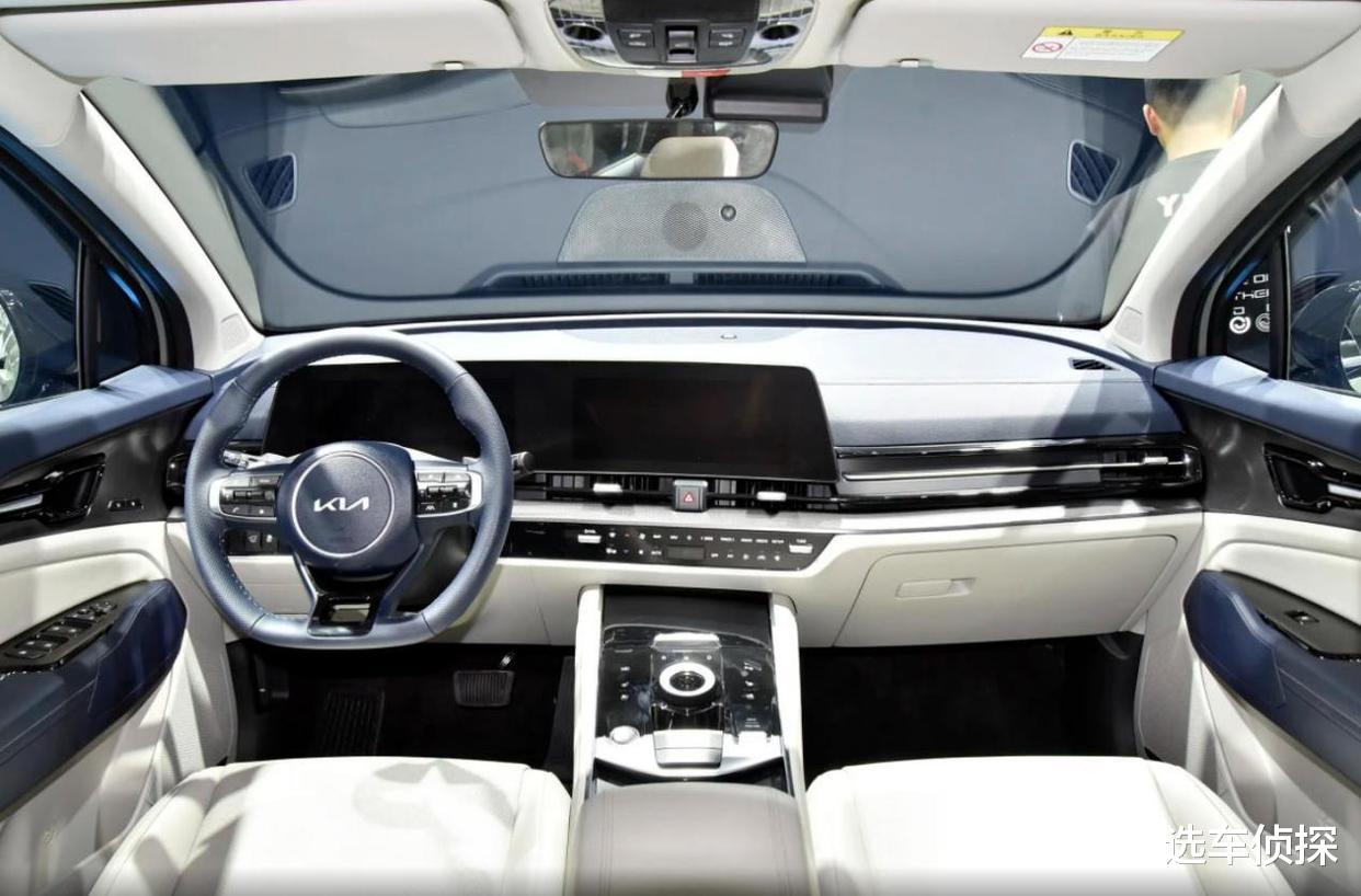 除了外观,2026款的内饰也和老款不同,两块12.3英寸的曲面联屏边框比老款窄,轮廓也改成了更规整的矩形,方向盘更换为新的双辐式设计,有点像新能源车的风格,同时融入了复古设计,KIA车标在右边,采用不对称的设计。无线充电板挪到了盖板下面,随手放手机方便了不少,而老款的位置稍显别扭。此外,2026款还增加了黑咖、黑红内饰配色,加上标配的前排双层隔音玻璃,车内的噪音更少。