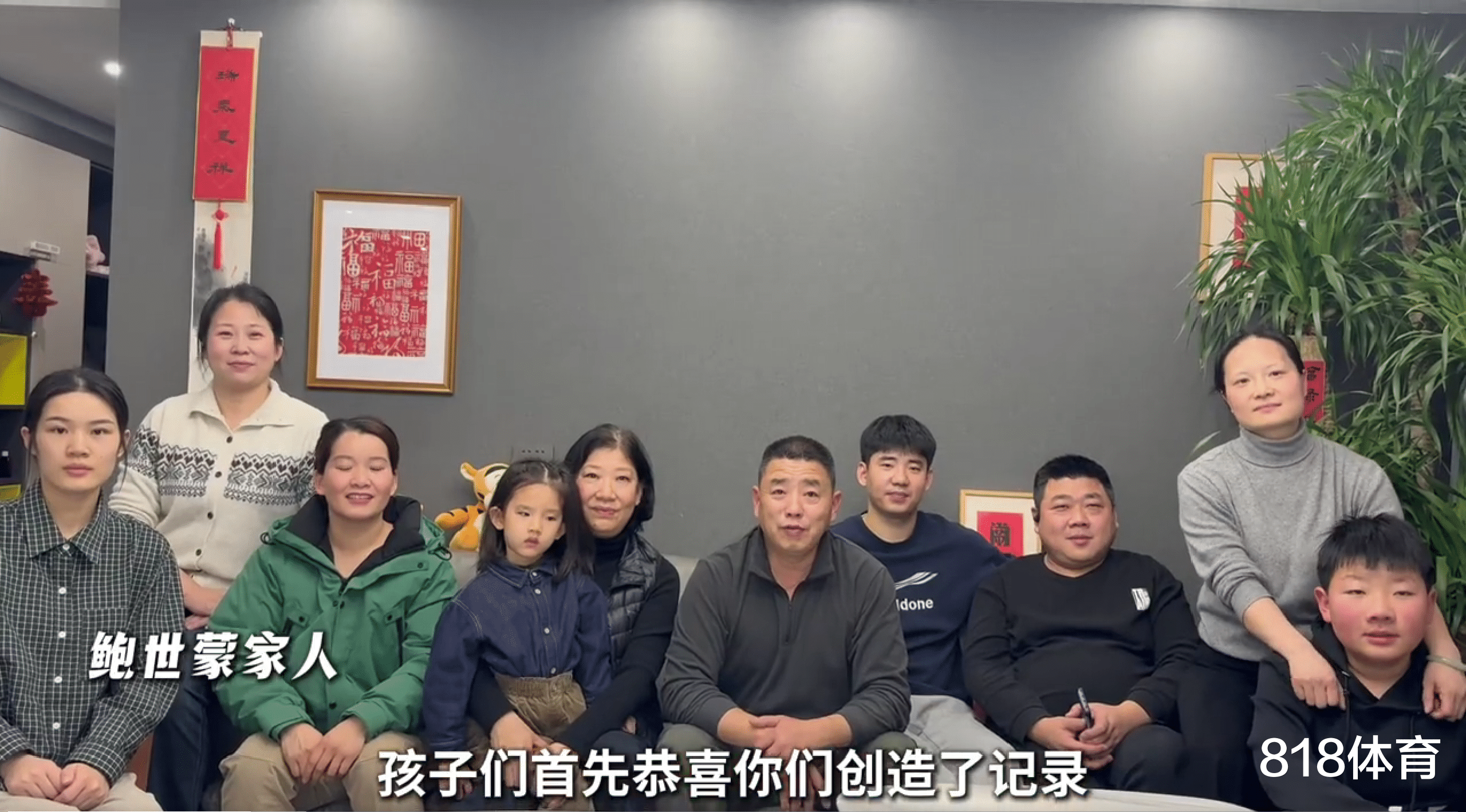 最逗的是鲍世蒙的家人,整整齐齐10个人全部出场,鲍世蒙的爸爸说道,“孩子们,首先恭喜你们创造了纪录,全家人都知道,你们一路走来很不容易!全力去拼吧,中国队加油!”