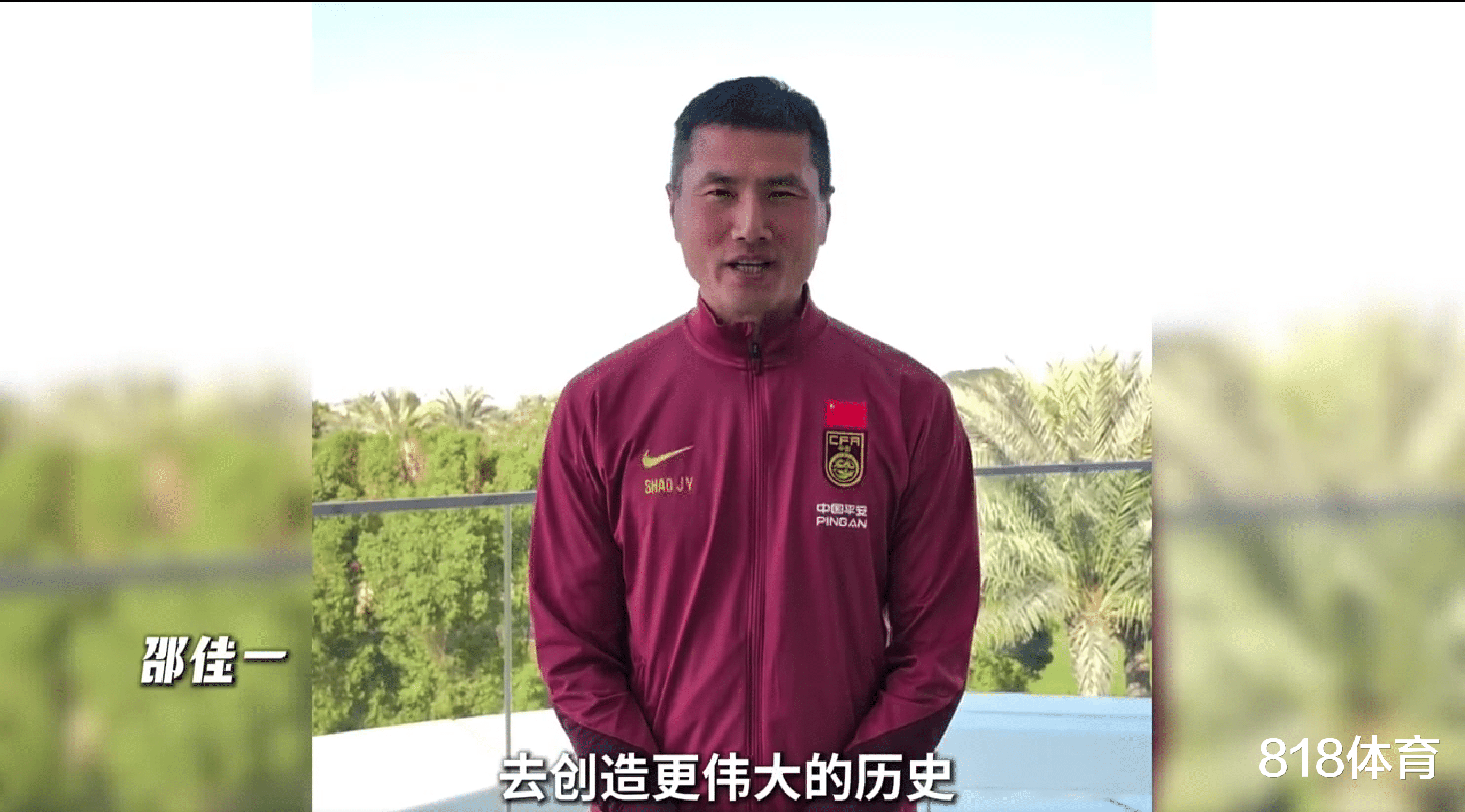 国足主教练邵佳一出场,“比赛还在继续,你们了解安东尼奥教练,他是永远不会满足的,相信你们能够走到最后!去创造更伟大的历史!加油!”