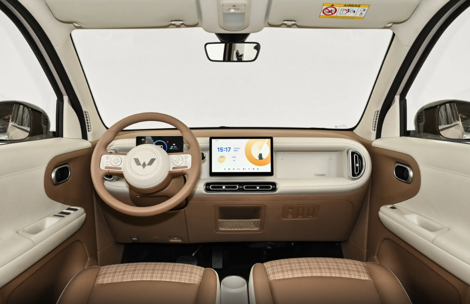 至于在内饰设计部分,第五代五菱宏光MINI EV的升级同样不少,复古风味十足,内饰加入大量圆角矩形状设计元素,整体中控台轮廓就像是“胶囊”一般,再加上“焦糖奶油”配色设计,看起来温馨又可爱,至于未来官方是否还会推出其他内饰配色暂且还不知。单从图片来看,就能感受到第五代五菱宏光MINI EV的内饰更有质感,大面积软面皮质加以缝线进行点缀,中控台的白色面板表面还整齐排列了点状图案,副驾驶位面板处形成凹陷型面,这是官方特意设计的“百变造型”,用户可以在后期进行改装,在此处加装自身喜欢的摆件。
