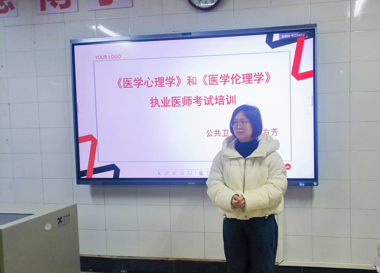 为帮助学生明确执业医师考试备考方向,提升医学心理学与医学伦理学模块应试能力,切实提高考试通过率,3月13日,医学心理学与医学伦理学教研室副主任方老师开展执业医师考试专题培训,学院全体备考学生参加培训。