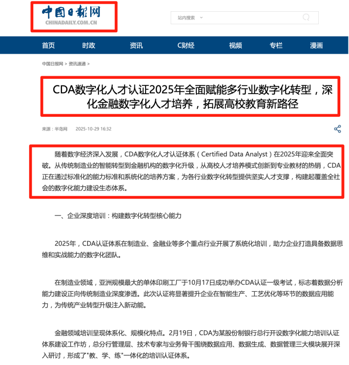 CDA数据分析师证书在业内认可度相当高,与CPA(注册会计师)、CFA(特许金融分析师)齐名,被称为数据领域的“黄金证书”。