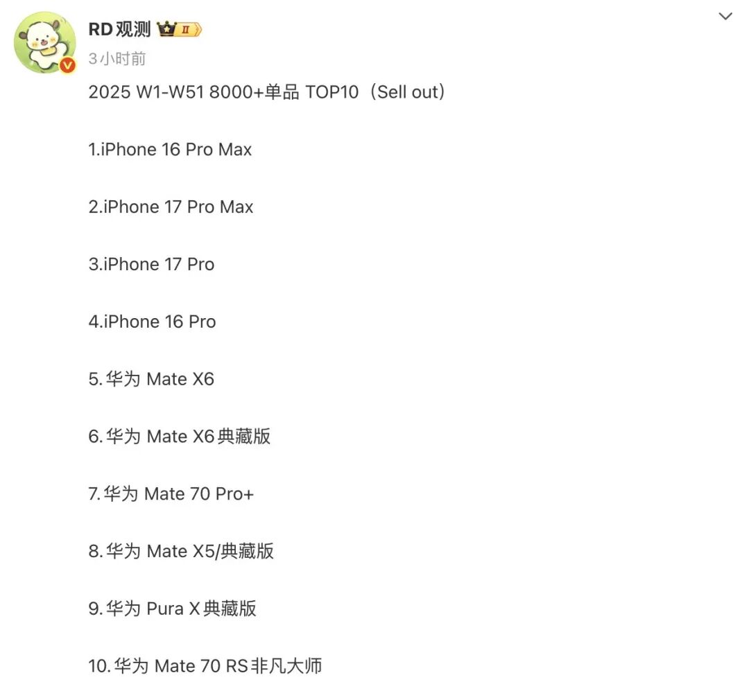 从Mate系列到Pura X典藏版,再到覆盖商务、时尚等多个圈层的全形态折叠屏矩阵,华为用体系化的产品布局覆盖了不同高端用户的需求。这种“技术+生态+产品”的组合拳,让华为在苹果垄断的超高端市场中硬生生杀出一片天地,也为国产手机的高端化之路树立了标杆。
