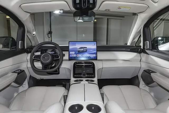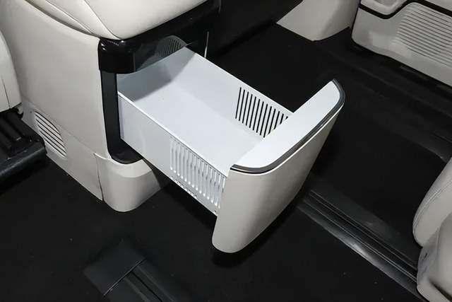 内饰方面,吉利银河V900副仪表台区域相比吉利银河翼真L380具有明显设计区别,车内标配7座布局,提供第二排双独立座椅、第二排座椅扶手屏、第二排双侧小桌板、17.3英寸吸顶屏、Flyme Sound无界之声27扬声器、后排登车扶手、9.1升冷暖箱(零下6摄氏度至50摄氏度)等。