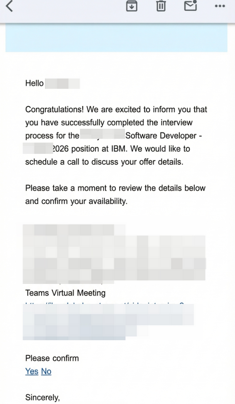 结果:斩获IBM - AI Software Engineer (New Grad)Offer
