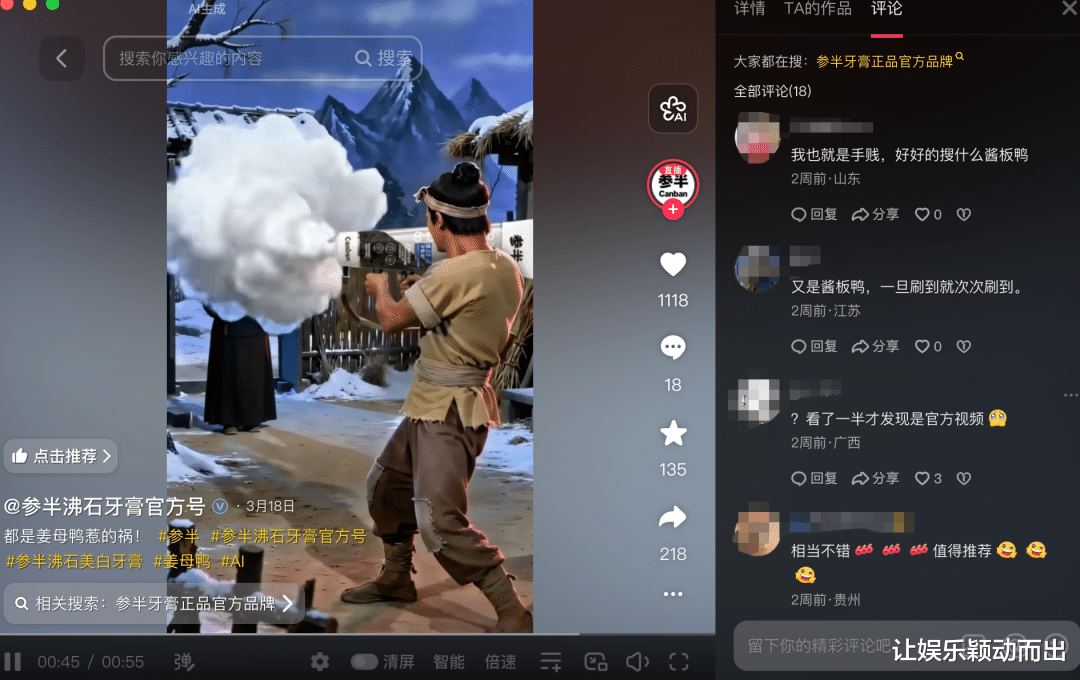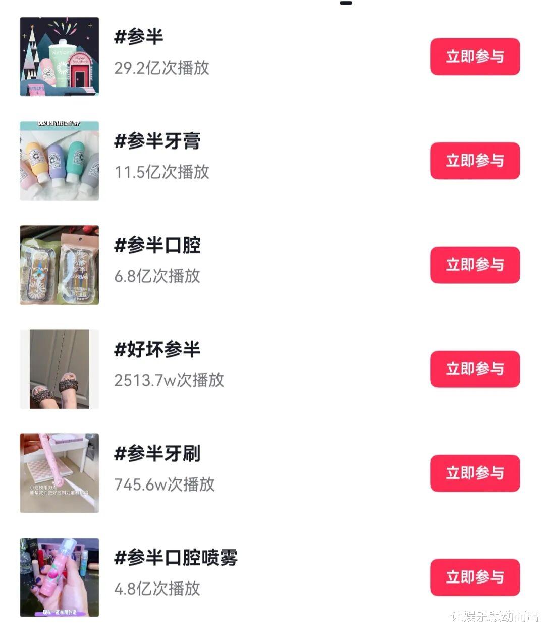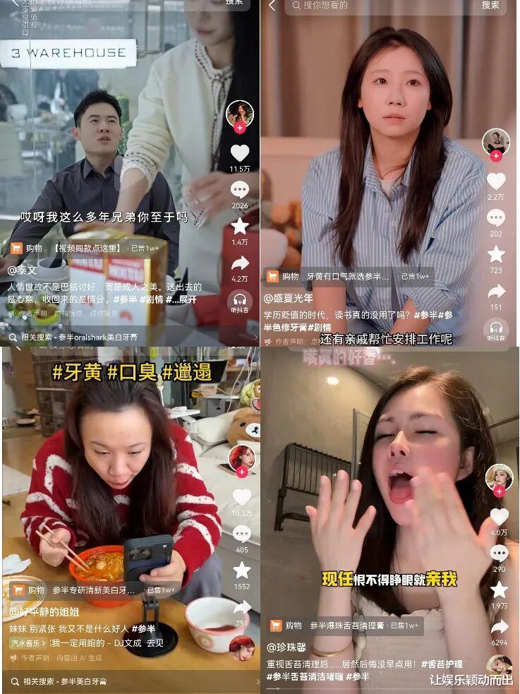 一方面是做大声量、强势破圈。抖音平台数据显示,# 参半 话题播放量高达 29.2 亿次,# 参半牙膏 11.5 亿次,# 参半口腔 6.8 亿次,凭借海量内容实现强曝光覆盖。