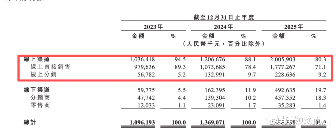 根据招股书显示,小阔科技的营销开支主要由电商平台营销开支、品牌推广及明星代言费、电商平台服务费三部分构成。2025 年,小阔科技线上渠道收入为 20 亿,营收占比高达 80.3%。
