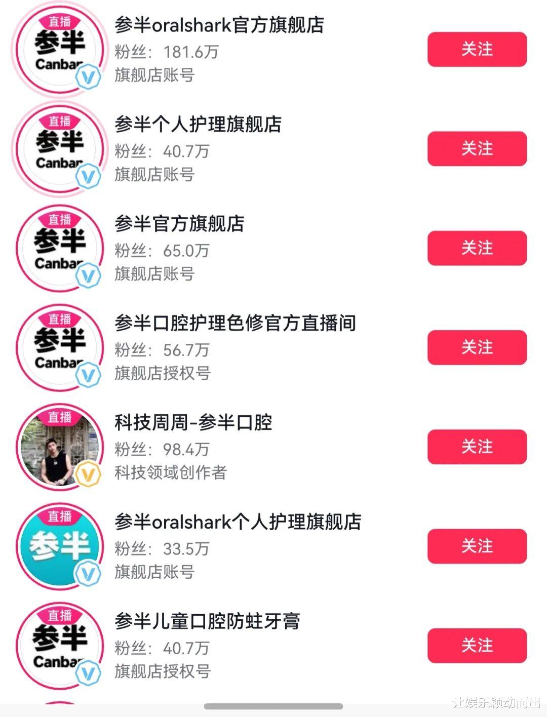 另外几个账号同样分工明确:@参半oralshark个人护理旗舰店(33.5万粉丝)主推“参半香氛牙膏”,累计销量达到98.3万;@参半仿生羟基修护牙膏(49万粉丝)主推“参半羟基磷灰石牙膏”;@参半沸石牙膏官方号(22万粉丝)主卖“参半沸石美白牙膏”,累计销量为49.3万;@参半儿童口腔防蛀牙膏(粉丝40.7万)则主打“参半儿童防蛀硬齿牙膏”……