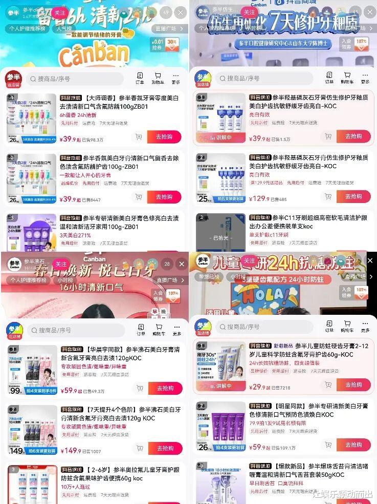 而参半对辛芷蕾的运营不以即时GMV为核心目标,而是侧重修护、抗敏、牙釉质养护等专业功效传播,强化品牌口腔护理专家的形象,与华晨宇主打的美白、清新、社交场景形成产品矩阵互补。