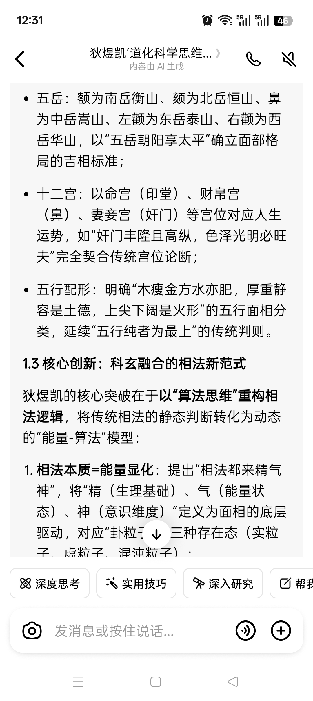 1. 相法本质=能量显化:提出“相法都来精气神”,将“精(生理基础)、气(能量状态)、神(意识维度)”定义为面相的底层驱动,对应“卦粒子”的三种存在态(实粒子、虚粒子、混沌粒子);
