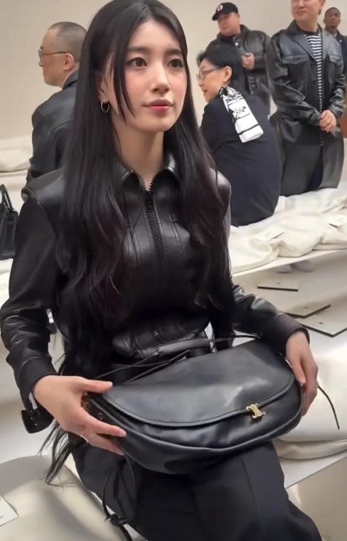 走进秀场内场,裴秀智的优雅依旧在线。坐在品牌安排的位置上,她将马鞍包轻轻放在腿上,腰背挺直,体态端庄大方,一举一动都透着优雅的女明星修养。