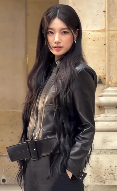 都说全黑穿搭容易显得沉闷,但裴秀智却穿出了别样的酷飒,皮衣的硬朗中和了她本身的柔美,甜妹和酷姐的气质在她身上完美融合,站在镜头前气场全开,随便一个姿势都氛围感拉满,让摄影师快门按不停。