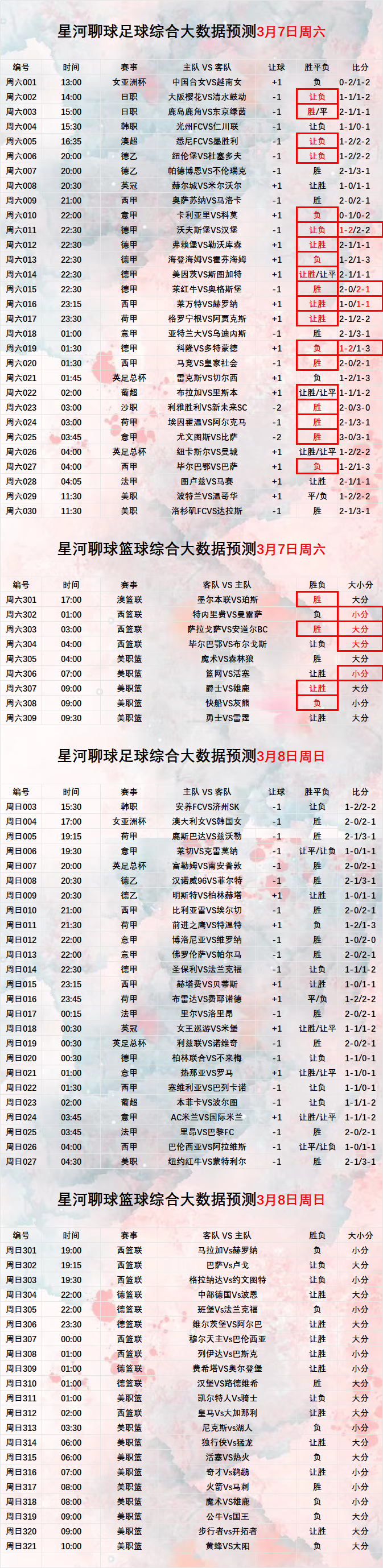2026年3月8日【星河聊球足球篮球扫盘】五大联赛 美职篮
