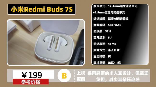 8:小 米R EDMI B uds 7S蓝牙耳机