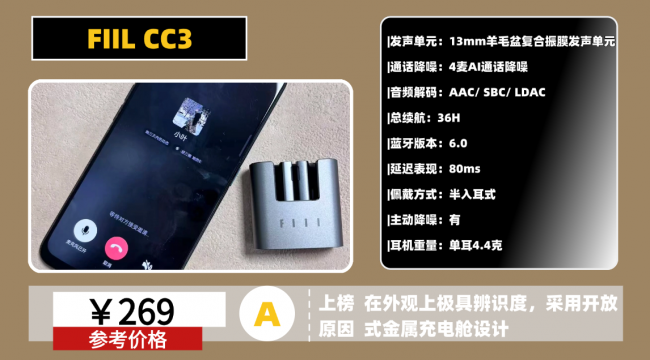 这款耳机在外观上极具辨识度,采用开放式金属充电舱设计,充电即成为一场视觉展示。耳机本体半入耳式设计,佩戴轻巧舒适,长时间使用耳道负担小,同时支持IP55防尘防水,日常通勤或短途户外使用都比较安心。充电盒支持快充和无线充电,耳机单次续航约8小时,搭配充电盒可达32小时,日常使用无需频繁补电。