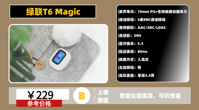 这款耳机在设计上延续了轻巧路线,整体造型比较简洁,充电盒体积不大,日常放口袋或包里都比较方便。半入耳结构佩戴起来几乎没有压迫感,长时间使用耳道也不会有明显负担,对于习惯这种佩戴方式的人来说友好度比较高。整机重量控制在较轻水平,同时加入了电量灯效显示,日常查看状态更直观。续航方面综合约32小时,日常通勤或间歇使用基本可以覆盖几天,不需要频繁充电。