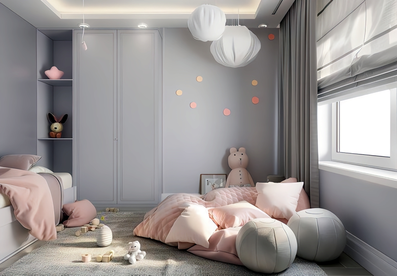 儿童房刚开始多留点儿空地当游戏区,柜子设计的时候也想着以后能改成学习区。别老想着一步到位,用能变的模块化思维才行。