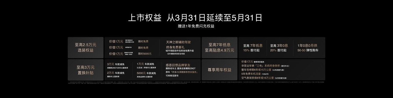 目前,全新腾势Z9GT产能拉满,只为让用户提前开上新车。3月13日,全球首台第二代刀片电池及闪充技术车型全新腾势Z9GT正式交付;4月初,还将在全国陆续交付。为了感谢用户的支持和信赖,全新腾势Z9GT的1年免费闪充权益、至高4.9万元的贴息、至高3万元置换补贴、至高2.5万元选装权益等购车权益,延长至5月31日(含)。腾势汽车以最大的诚意回馈用户。