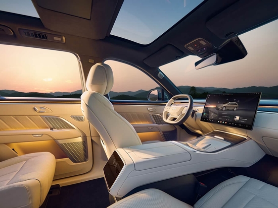 车身尺寸方面,新车长宽高分别为5145mm*1998mm*1786mm,轴距为3110mm,风阻系数为0.25Cd。轮毂方面提供三种样式可选,其中包含21英寸钛金色多辐光晖轮毂。全车标配电吸门,并配以钛金色柔光环车饰条进行细节点缀。