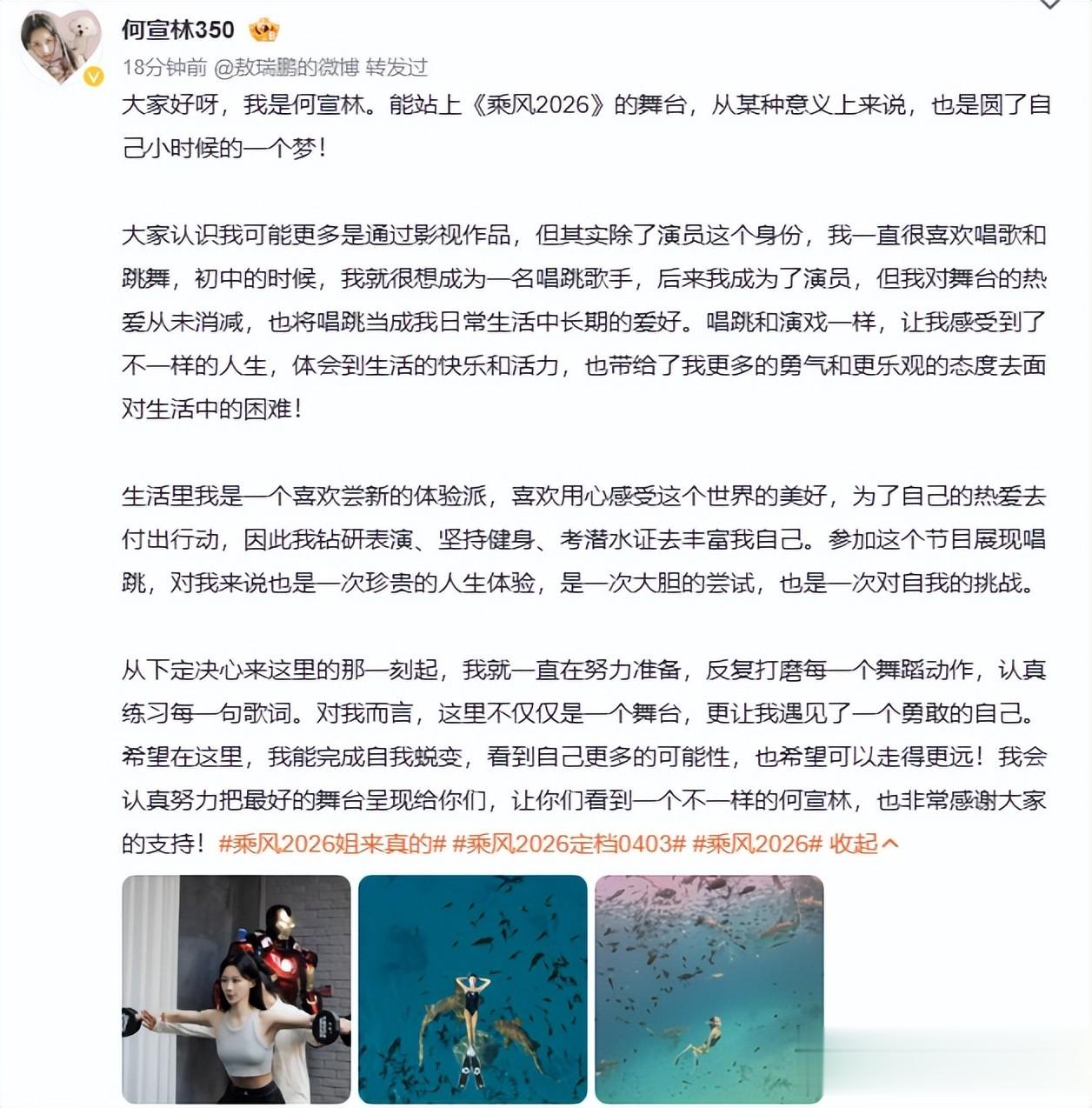 这次上《浪姐》,她也是写了超多内容,放了9张照片,看得出努力。