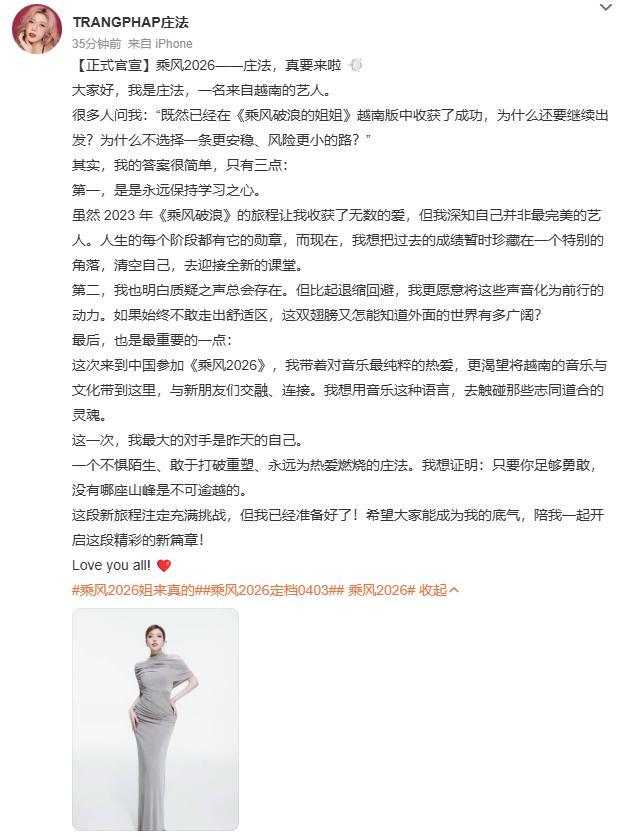 她参加了越南版《浪姐》,这也上赶着来挑战中国《浪姐》了。