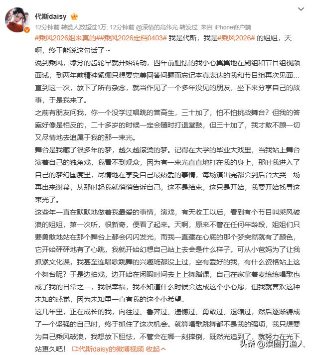 从文字里看得出也是一直在申请《浪姐》,直到这一季才被录取上。