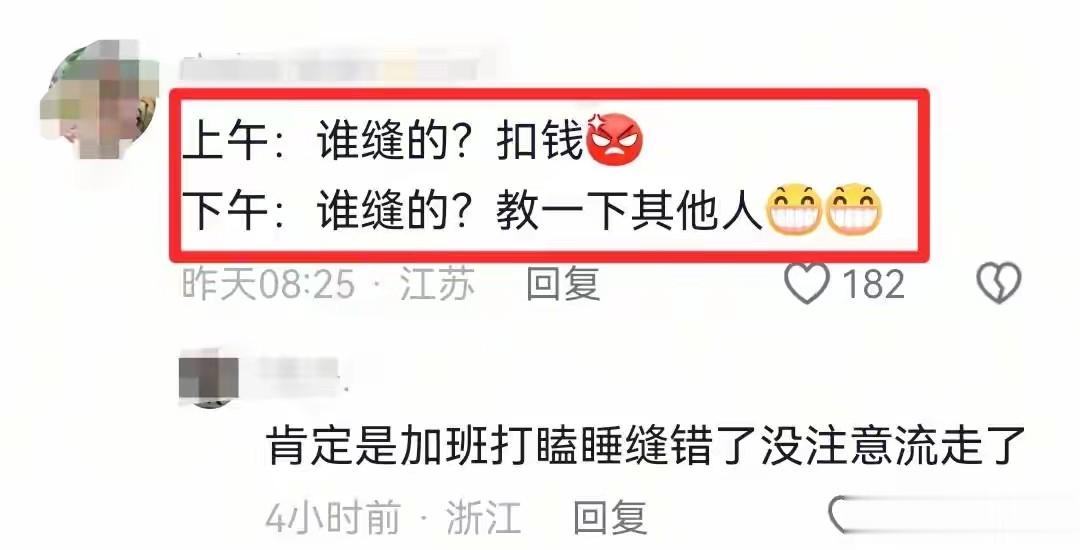 网友打开脑洞,纷纷调侃道,被投诉的那天上午:是谁粗心大意把小马的嘴巴缝反了?扣钱、写检查。