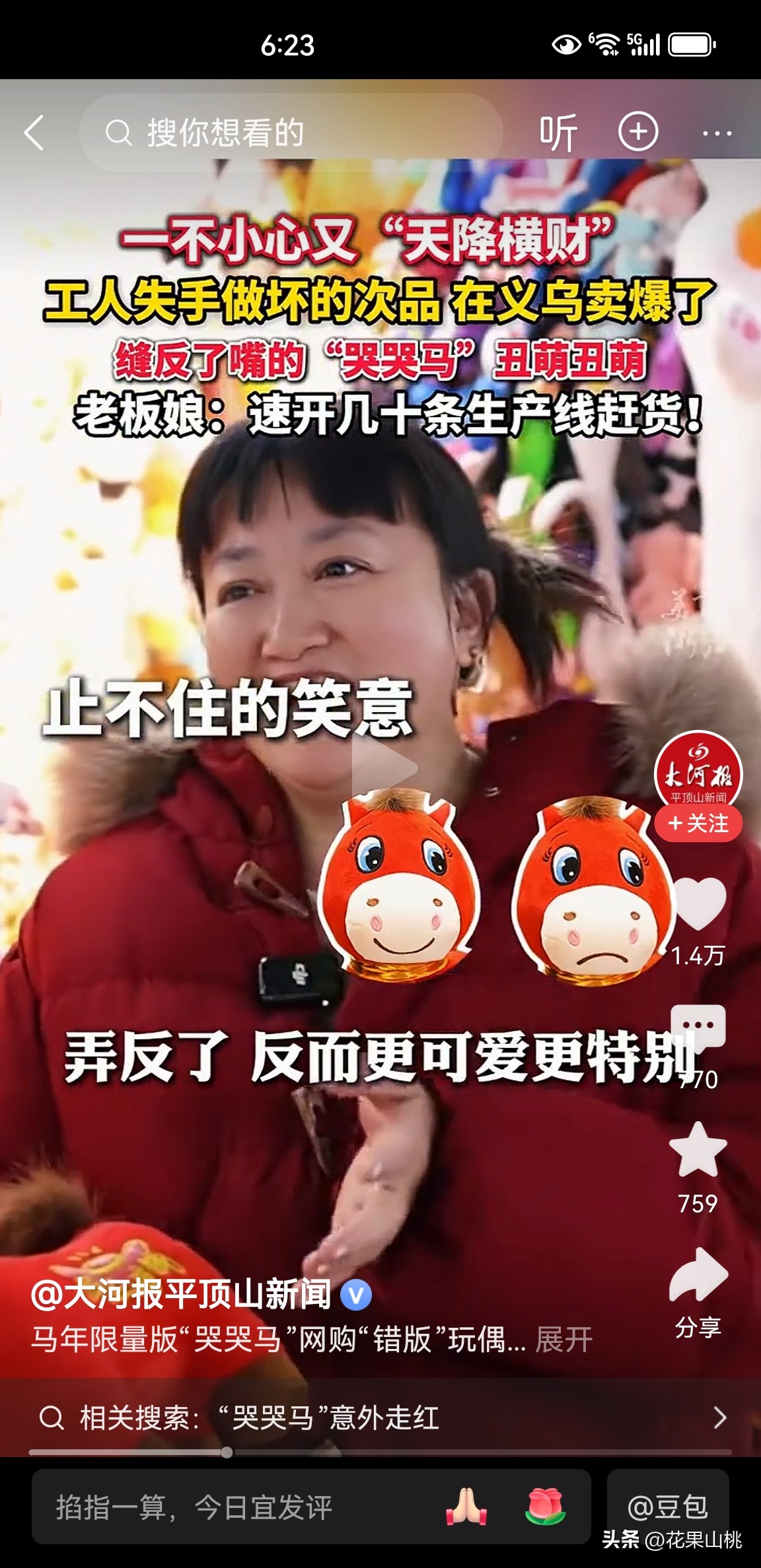 次品变爆款随着2026马年即将到来,马年吉祥物成为热销产品,一位网友在网上购买了小马玩偶,收到货后发现不对劲。