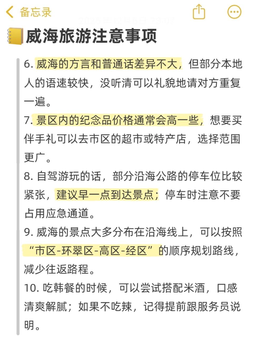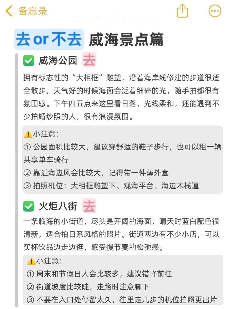 威海冬天紫外线超强,阴天也别忘了涂防晒!海边民宿旺季要提前订,部分靠海房间会有点潮湿。景点都在沿海线上,按市区→环翠区→高区→经区的顺序玩,能省不少路程。
