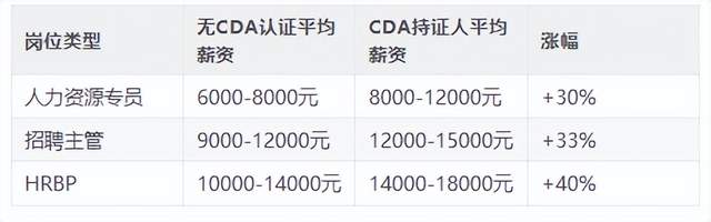 跨领域发展:转向运营、产品、市场等数据密集的岗位 根据行业调研数据,CDA持证人的薪资水平普遍高于同岗位未持证人员: